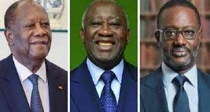 Alassane Dramane Ouattara, Président de la République sortant, Laurent Gbagbo, Président du PPA-CI et Tidjane Thiam, Président du PDCI-RDA.