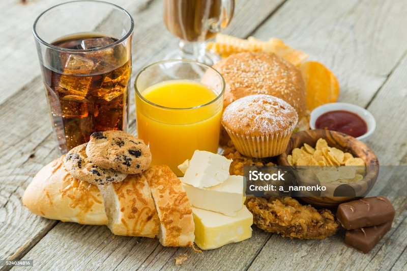 Quelques aliments et boissons qui contiennent du sucre.